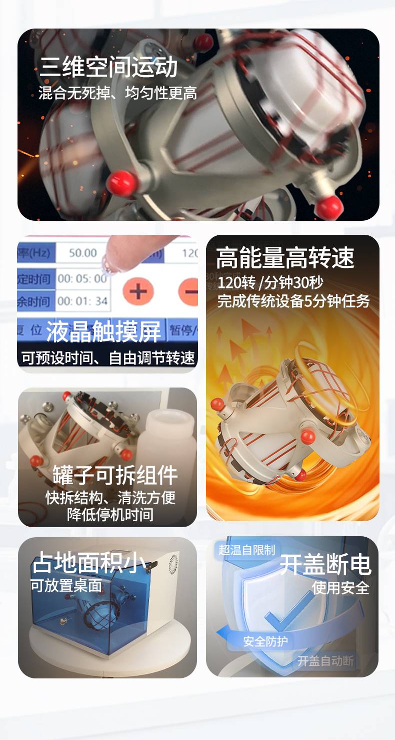 广泛应用于制药、化工、食品、轻工、电子、机械、矿冶、国防工业以及各科研单位的粉状、颗粒状物料的高均匀度混合。